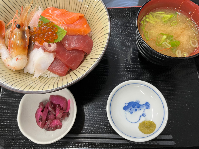 メインは種類豊富な海鮮丼ですが、海鮮ラーメン、ホッキカレー、たらや帆立のフライ定食など、白老町の海の幸を使用したメニューが豊富です。