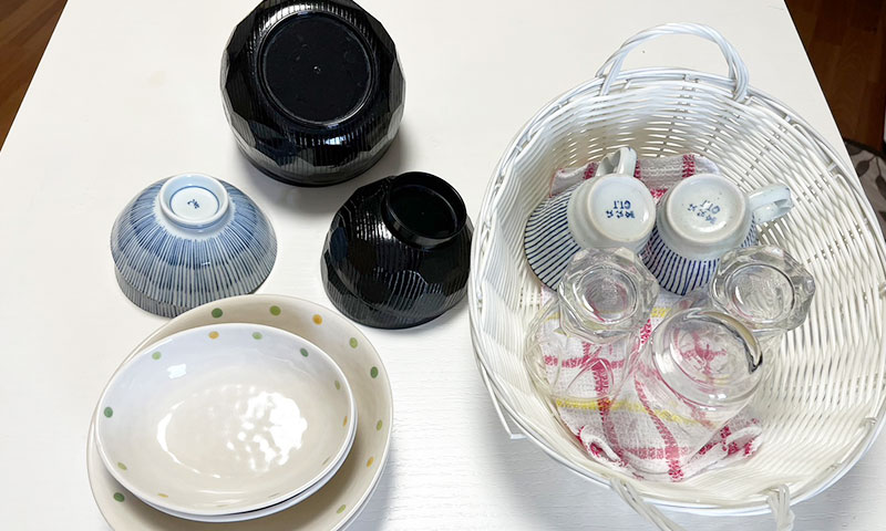 • 食器類(茶碗・汁椀・皿複数枚・丼・グラス・コーヒーカップ)